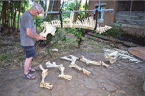 Letztendlich sollten sie das CMCK bereichern und so lud Prof. Schrenk im Jahre 2009 Eric Milsom, Fossilienpräparator am Hessischen Landesmuseum Darmstadt, und seine Frau Bettina Henrich, zoologische Präparatorin am Naturhistorischen Museum Mainz, beide Uraha-Mitglieder, zur Begutachtung nach Karonga, Da sauber und so gut wie vollständig, wurde der Plan zur Aufstellung des Skelettes gefasst und im Mai und Juni 2016 in fünf Wochen von Eric und Bettina in die Tat umgesetzt. Alle Arbeiten geschahen am Haus von Prof. Schrenk und die beiden wurden bestens von Hausmeister und Koch Christopher Sikazwe versorgt.